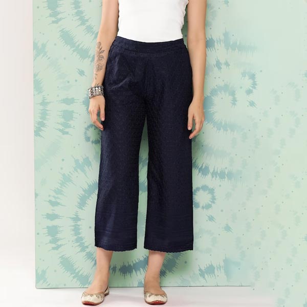 Navy blue woven palazzos