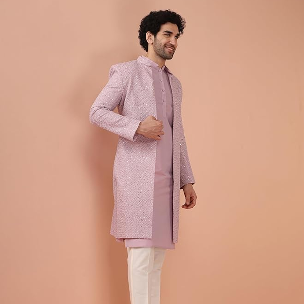 0 review(s) for "Men Pink Printed Kurta Indowestern Sherwani Trouser Set"